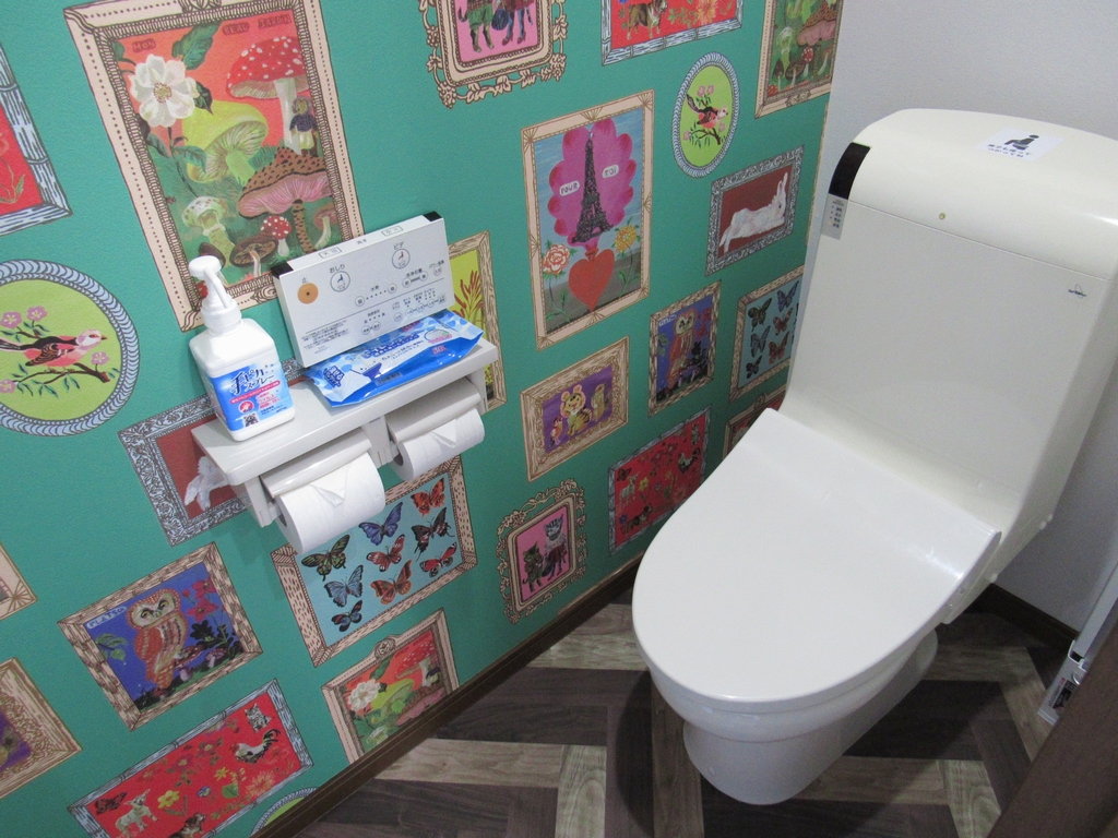 トイレですが、絵画っぽいものが壁一面にあっておしゃれです。
