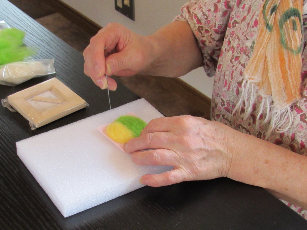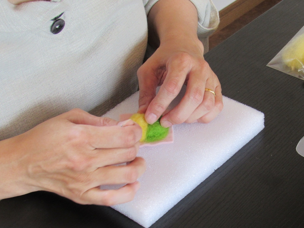羊毛フェルト未経験者・初心者の方用に軽く説明をしてから、実際に作り始めました。