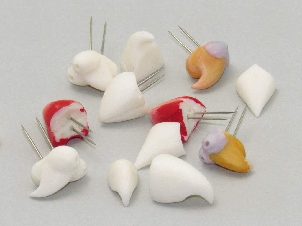 2023年7月21日 / 最終更新日時 : 2023年7月21日 おもにとり その他 樹脂粘土のクチバシ 頭や胴体の芯ができたら、次はクチバシを作ります。写真は作りかけや失敗作です。「3Dプリンターでクチバシ」の時に少し触れましたが、ダイソーの樹脂粘土でひとつずつ手作りしています。 ダイソーの樹脂粘土です。文鳥のクチバシなら、10~20個くらいは作ることができると思います。 クチバシが完成したら、本体に取り付ける部分に瞬間接着剤などで針を取り付けます。こうすることで塗装するときの持ち手になりますし、取り付ける位置決めのときに何度も抜き差しできて便利です。 コメントを残す コメントをキャンセルメールアドレスが公開されることはありません。 ※ が付いている欄は必須項目ですコメント ※ 名前 メール サイト 次回のコメントで使用するためブラウザーに自分の名前、メールアドレス、サイトを保存する。