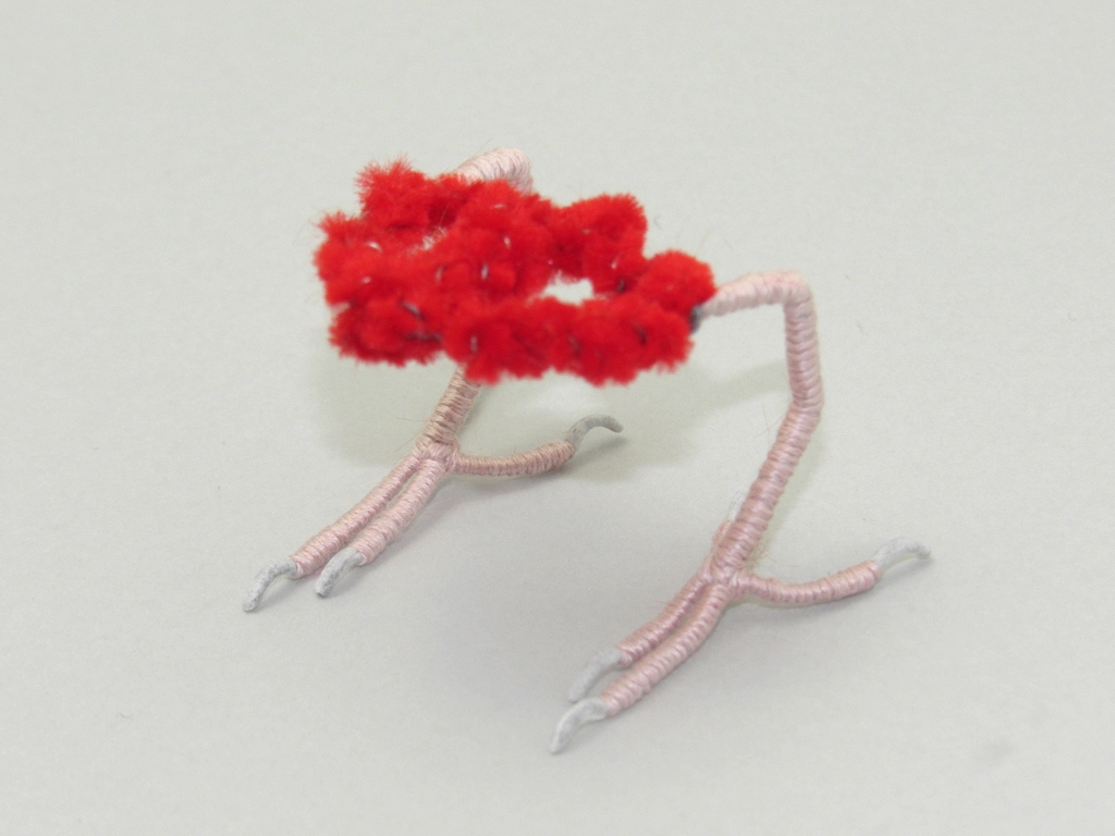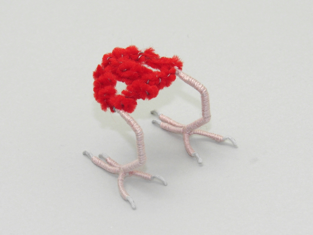 左右作って足っぽく曲げて2本を接続し、その上からラッピング等で使うモールを巻き付けます。