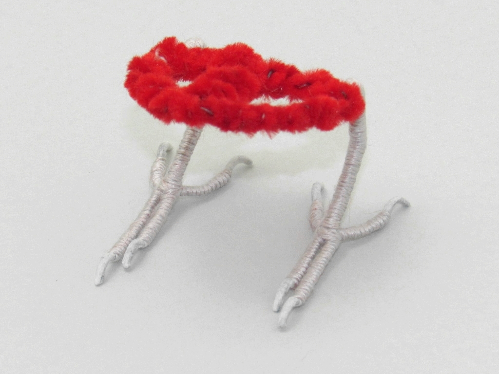 左右作って足っぽく曲げて2本を接続し、その上からラッピング等で使うモールを巻き付けます。