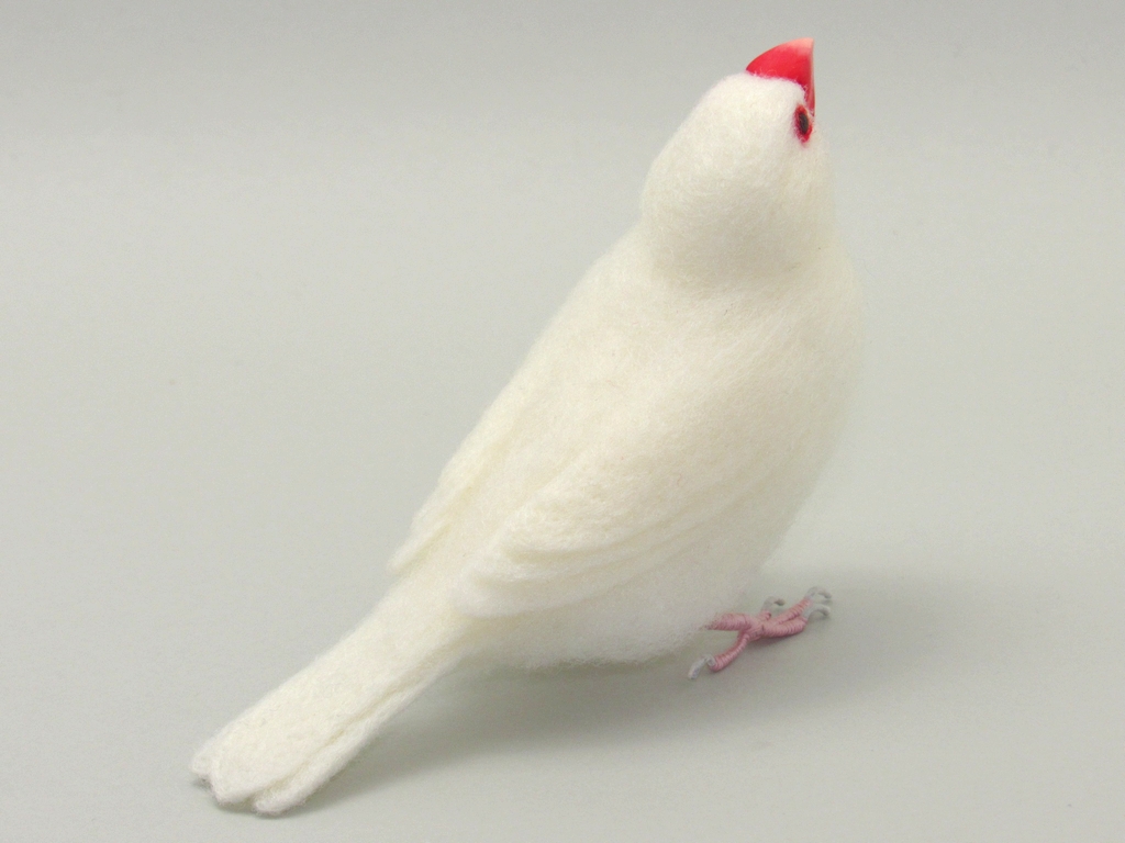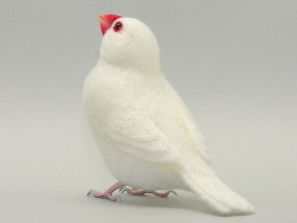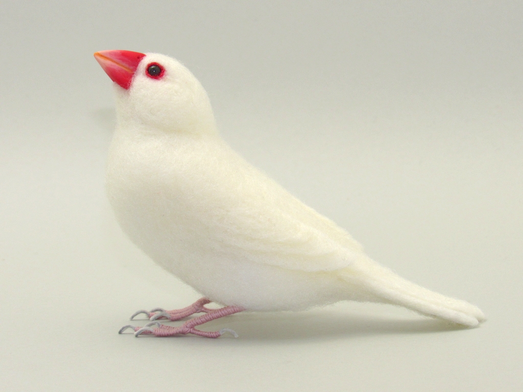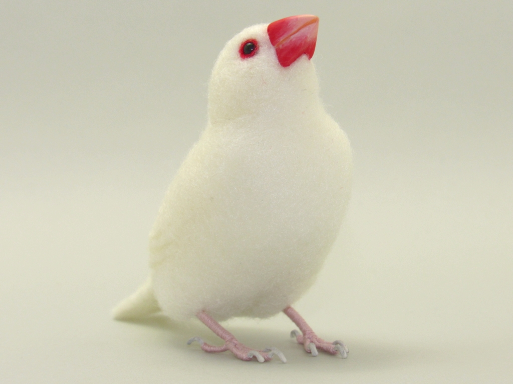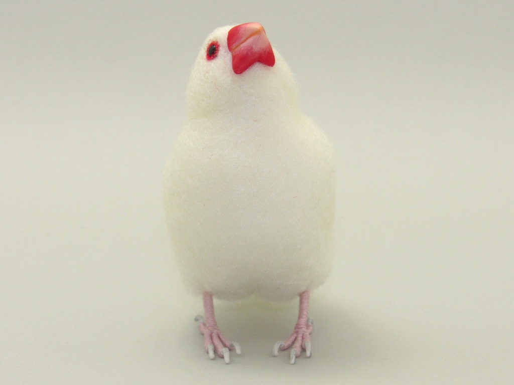 今回は、少し内股で、少し見上げた感じで、リラックスした感じの文鳥にしてみました。