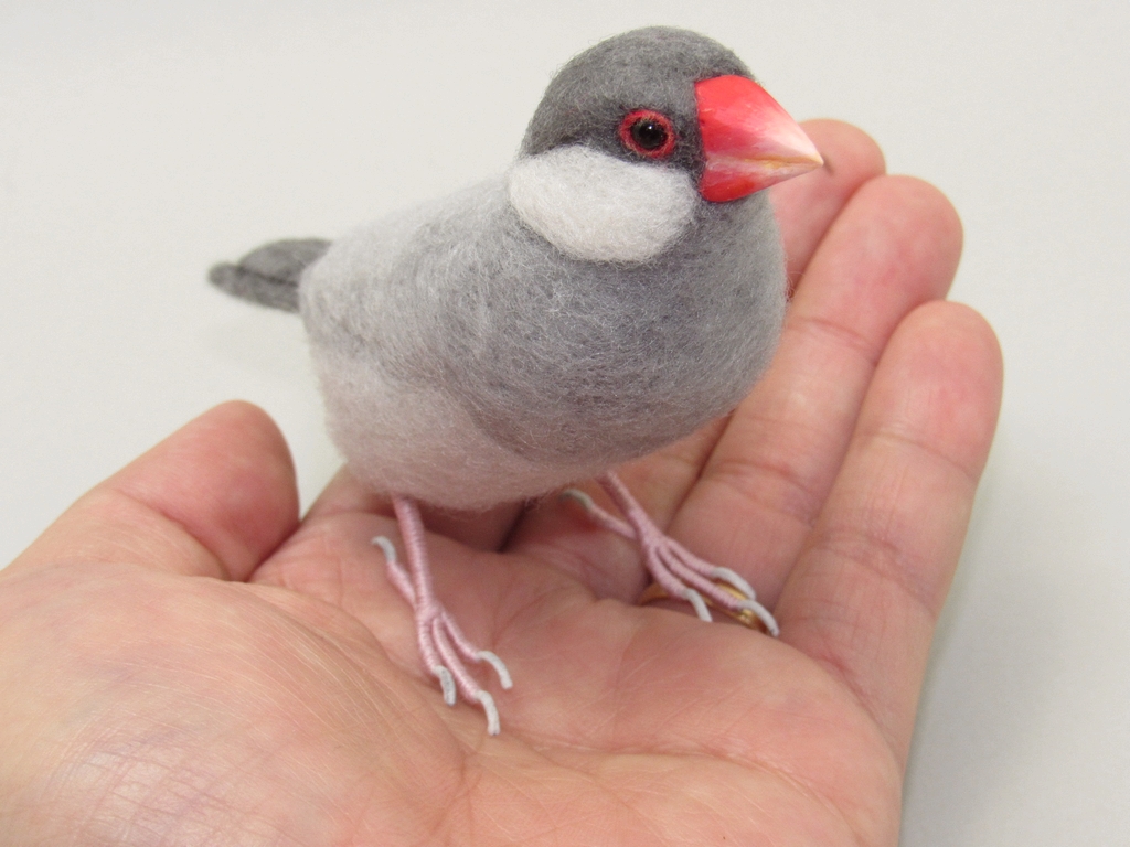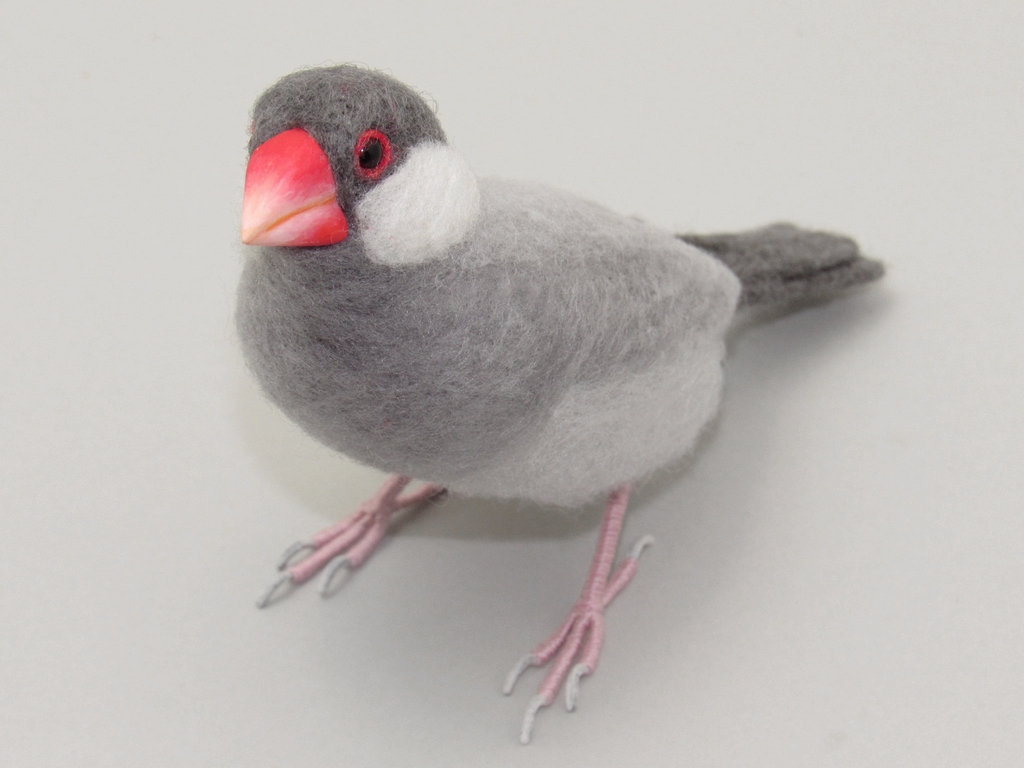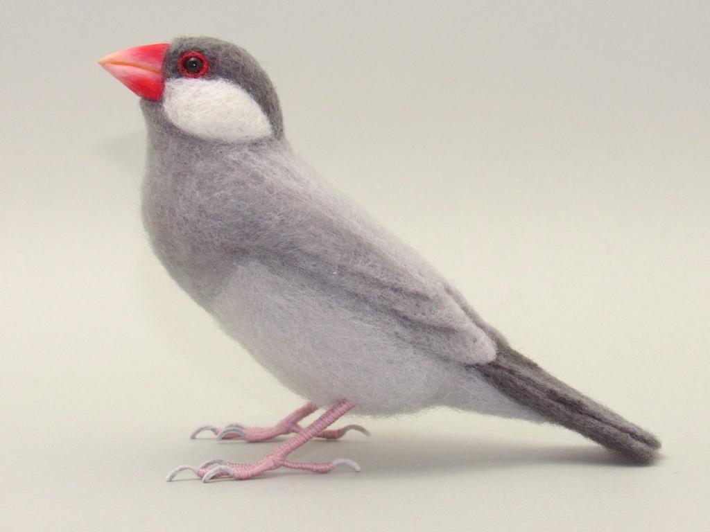 本物そっくりを目指して制作した シルバー文鳥 となります。