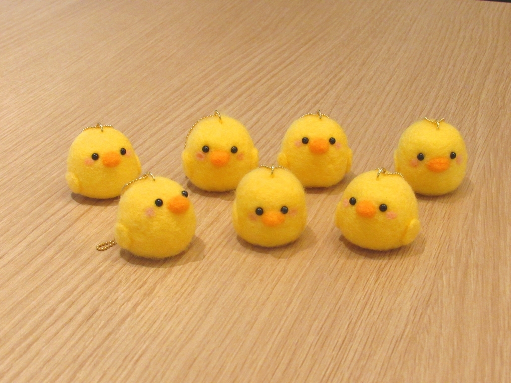 クチバシの次は目とチークを入れるのですが、ここまでくると顔の表情がでて一気にヒヨコになります。