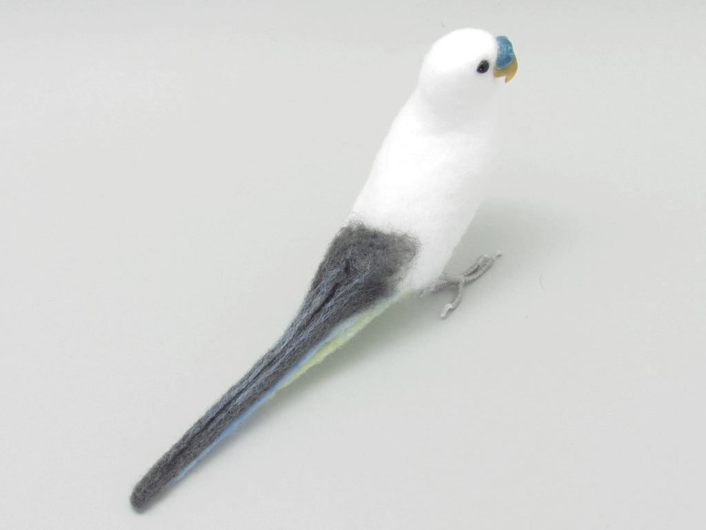 しっぽとクチバシが付いて、セキセイインコっぽくなってきました。