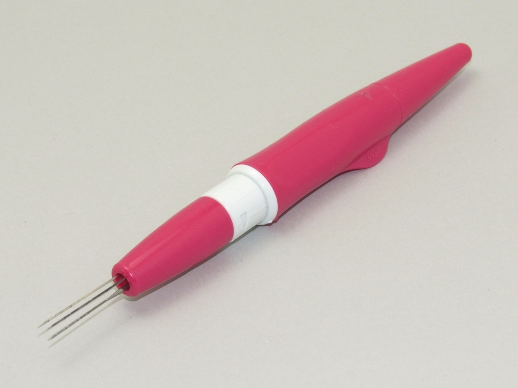 ニードルを3本セットすることができるので、単純に作業が3倍スピードアップします。細かい作業には向きませんが、平らなものや大きなものを作る場合に重宝すると思います。