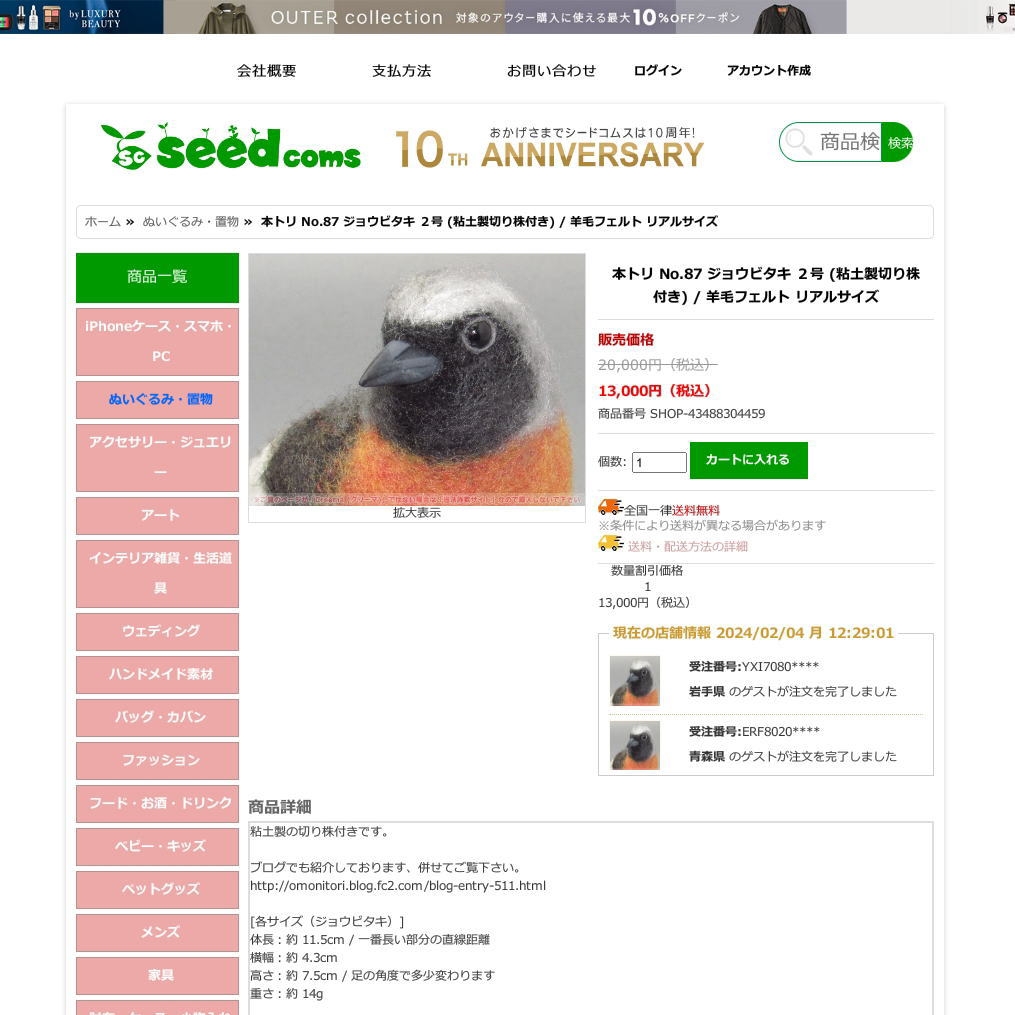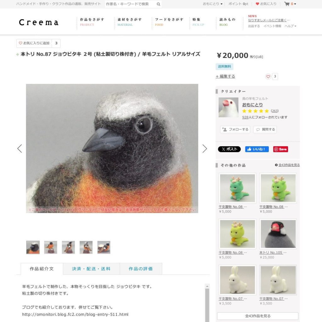 次に、こちらは同時刻くらいの作品の販売ページ ( https://www.creema.jp/item/14681845/detail ) となります。