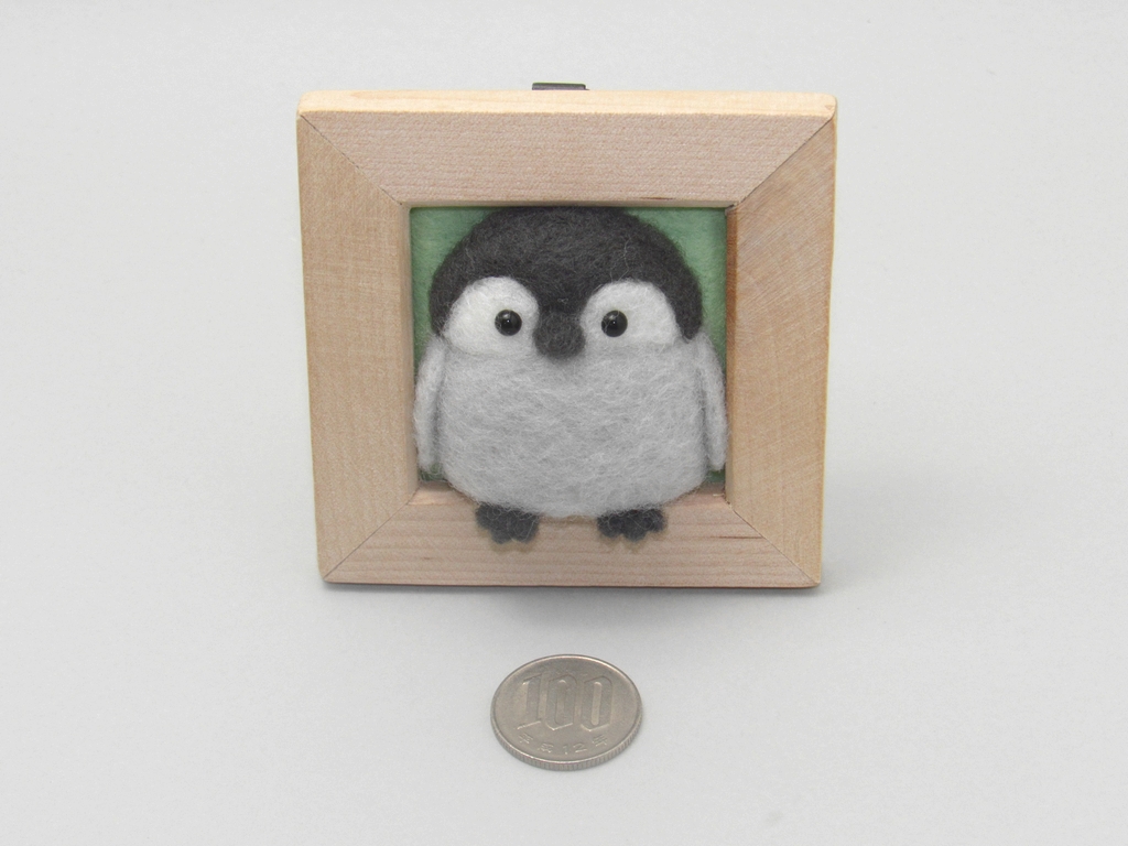 小さな木製のフレームの中に、かわいいペンギンがちょこんと止まっている感じの作品を作ります。