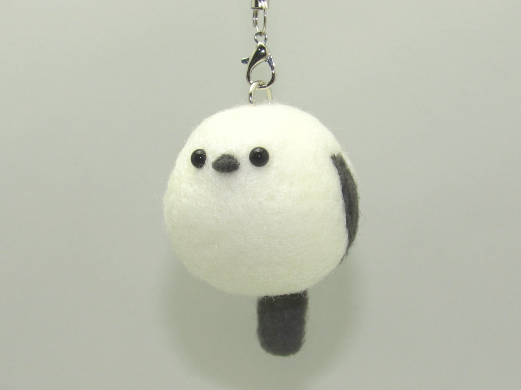 かわいい雪の妖精「シマエナガ」を丸くデフォルメしたマスコットを作ります。ストラップにして吊せる直径4cm程度の大きさです。